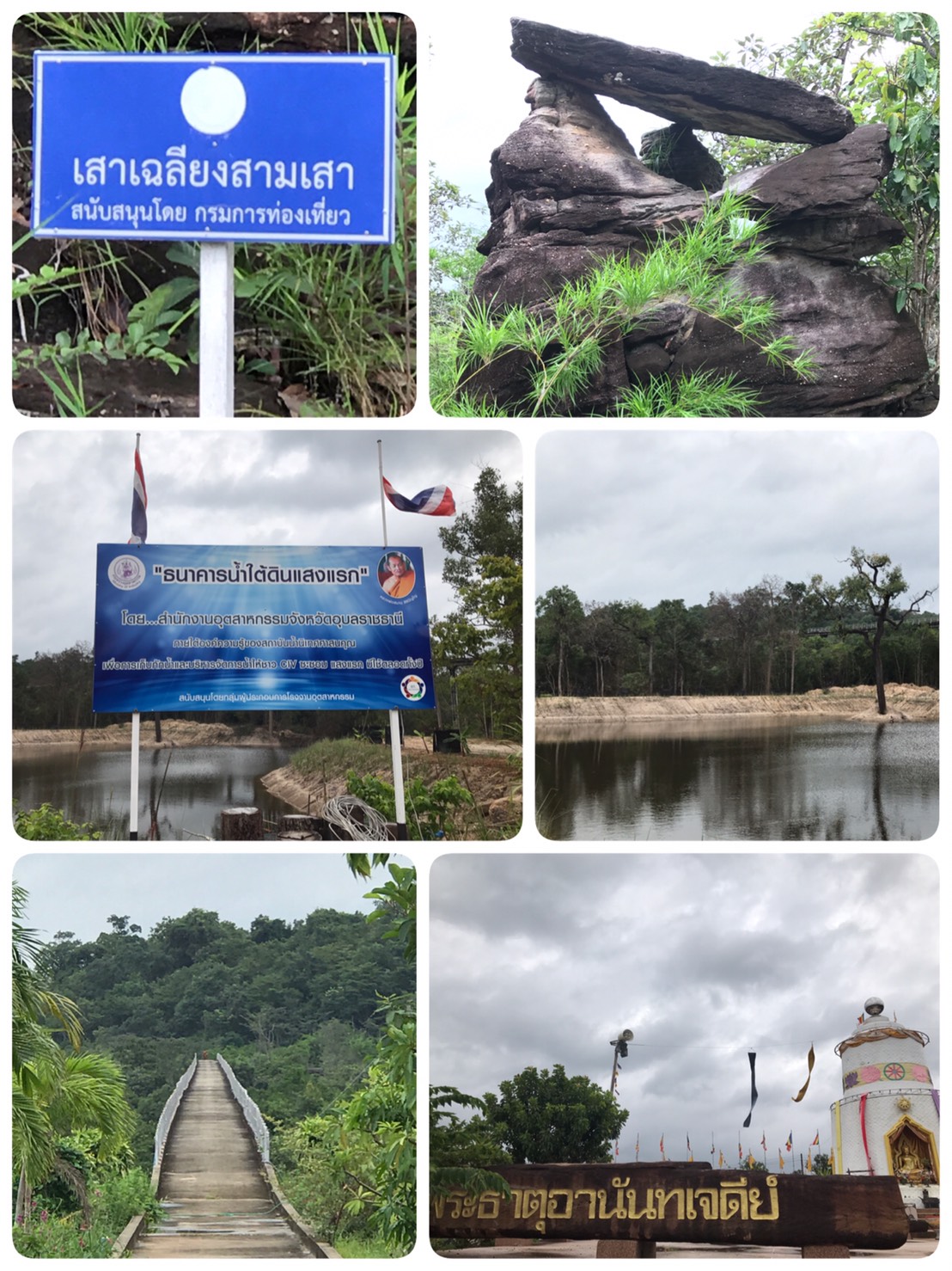 2.1 เยี่ยมชม เสาเฉลียง 3 เสา ที่มีแผ่นหินวางอยู่ด้านบน ด้านข้าง บนก้อนหิน