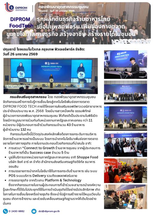 กิจกรรมสร้างการรับรู้การเชื่อมโยงสู่เทคโนโลยีเพิ่มช่องทางตลาด DIPROM FOOD TECH ภายใต้โครงการส่งเสริมซอฟต์พาวเวอร์สาขาอาหาร ประจำปีงบประมาณ พ.ศ. 2568